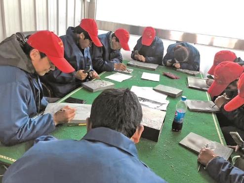 “叮叮叮,當當當……”秋日的陽光灑在黃南藏族自治州澤庫縣和日鎮(zhèn)和日村的石雕展覽廳,清脆的鑿刻聲此起彼伏。幾十名石雕藝人席地而坐,身前的木桌上放著方形青石板,他們的眼睛緊盯著描畫在石板上的線條,手指緊攥刻刀,時而輕描勾勒,時而用力雕琢,不一會兒,祥紋山水圖案便在刀尖下漸漸呈現(xiàn)——在有著“高原石刻第一村”美譽的和日村,一塊石板、一把刻刀,正鐫刻出村民們的幸福生活。