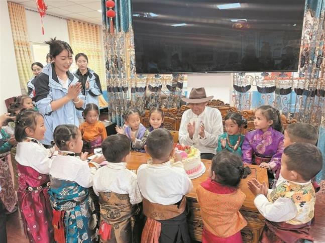 10月29日,黃南藏族自治州同仁市城南幼兒園組織孩子們走進(jìn)當(dāng)?shù)鼐蠢显?,?dāng)天恰逢一位老爺爺生日,師生特意準(zhǔn)備了生日蛋糕,為老人舉辦了一場溫馨熱鬧的重陽生日會(huì)。生日蠟燭點(diǎn)燃,孩子們稚嫩的童聲唱響生日歌,老人在大家的祝福中許下美好心愿,共同分享香甜的蛋糕。