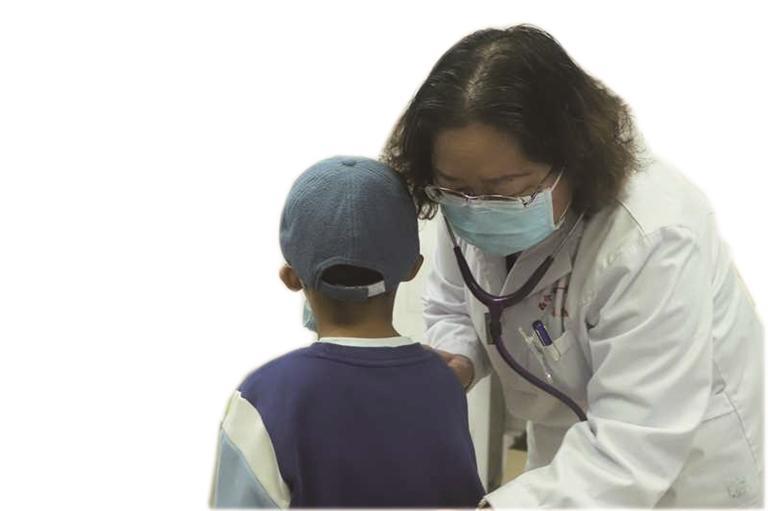 邱曉莉給前來就診的孩子做檢查。
