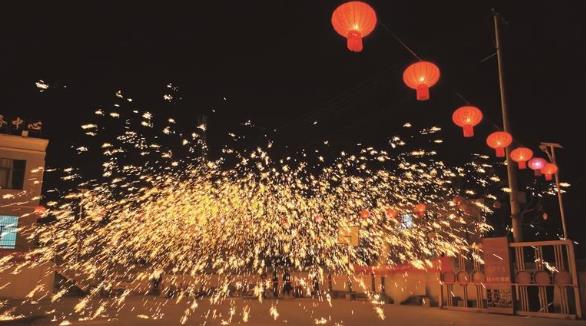 2月12日晚,海東市樂都區(qū)高廟鎮(zhèn)郎家村燈火璀璨、人聲鼎沸,一場集打鐵花、火壺、變臉、醒獅于一體的民俗盛宴火熱開演。
