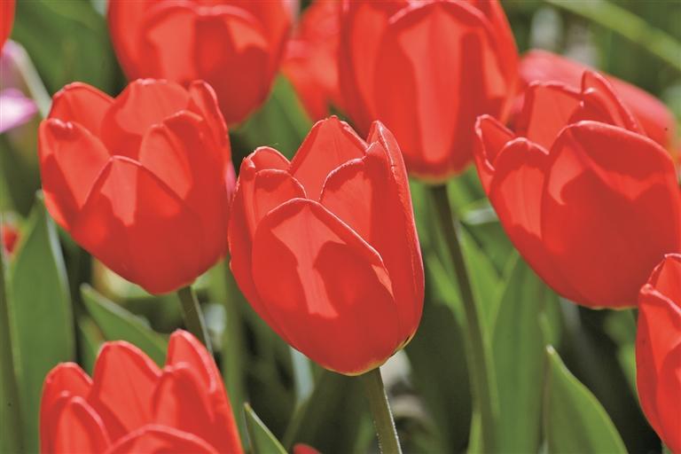 4月26日,西寧陽(yáng)光明媚,記者步入人民公園,目光首先被一片熾烈的紅所吸引。那是“皇家紅”,花瓣厚實(shí)如絲絨,色澤飽滿(mǎn)欲滴,在陽(yáng)光下像一大把靜靜燃燒的火炬,端莊而熱烈。不遠(yuǎn)處,“金色阿波羅”則鋪開(kāi)一地陽(yáng)光,明黃的花盞昂首向著藍(lán)天,仿佛要將天際的湛藍(lán)也吸入自己的燦爛里。