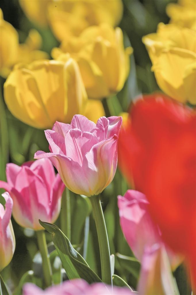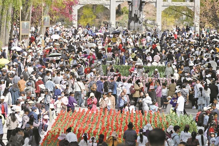 春風(fēng)拂過(guò)高原古城,西寧市人民公園便被斑斕的色彩喚醒。30個(gè)品種22萬(wàn)株郁金香在晴空下舒展著飽滿(mǎn)的花瓣,每一株郁金香都像精心雕琢的藝術(shù)品,紅的熱烈,黃的明艷,紫的優(yōu)雅,粉的溫柔。萬(wàn)千花朵匯成一道道流動(dòng)的彩帶,隨著微風(fēng)輕輕搖曳。